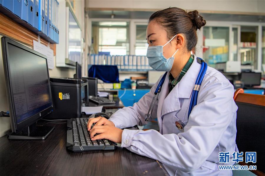 在西藏自治區(qū)人民醫(yī)院實習的西藏大學醫(yī)學院2017級內科學專業(yè)研究生張澤鑫在工作中(2月23日攝)。新華社記者孫非攝