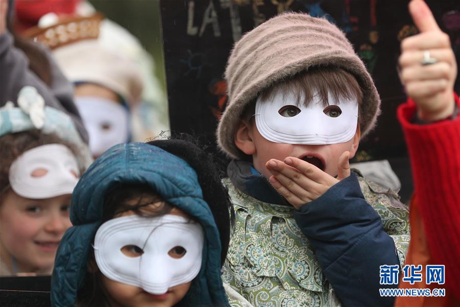 2月27日,兒童在比利時(shí)布魯塞爾參加狂歡節(jié)活動(dòng)。 新華社記者鄭煥松攝