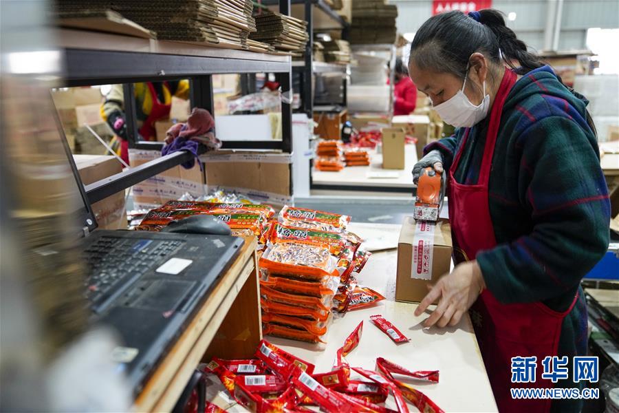 2月27日,在秀山(武陵)現(xiàn)代物流園區(qū)的電商云倉內,工人在打包包裹。地處重慶市秀山縣的秀山(武陵)現(xiàn)代物流園區(qū),是渝湘黔三省市交界地區(qū)的區(qū)域性物流中心。重慶市秀山縣在做好新冠肺炎疫情防控工作前提下,當?shù)卣e極幫助電商、物流企業(yè)解決招工、運輸、銷售等方面的實際問題,推動秀山(武陵)現(xiàn)代物流園區(qū)快速進入全面復工復產(chǎn)階段。據(jù)介紹,隨著物流園區(qū)的電商和物流企業(yè)全面復工復產(chǎn),既滿足當?shù)厝罕姷奈镔Y供應,又幫助當?shù)剞r(nóng)產(chǎn)品通過電商平臺實現(xiàn)快速銷售。新華社記者劉潺攝