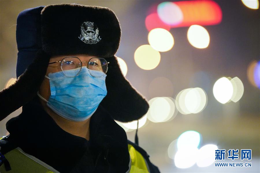 李可心在出入口值守(3月1日攝)。 新華社記者王松攝