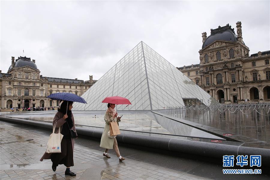 3月2日,在法國(guó)巴黎,游客撐傘走過(guò)盧浮宮的玻璃金字塔。新華社記者 高靜 攝