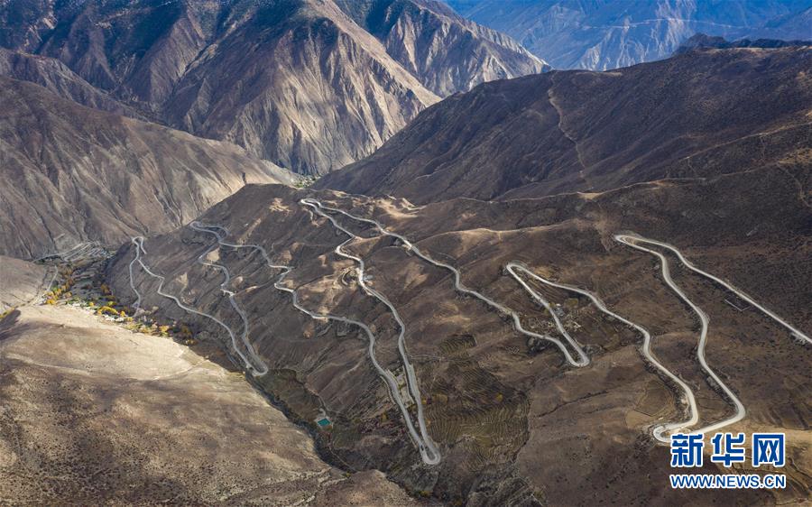這是“怒江72拐”,該處位于西藏自治區(qū)昌都市八宿縣境內(nèi),是川藏線上一段艱險(xiǎn)與美景并存的山路(10月23日無人機(jī)拍攝)。全長2000多公里的川藏公路,從成都開始,一路向西到終點(diǎn)拉薩,在橫斷山脈、喜馬拉雅山脈和念青唐古拉山脈間蜿蜒盤旋,因海拔落差大,彎道眾多,形成天路奇觀。川藏公路1954年12月25日通車,65年來,國家對川藏公路進(jìn)行了大規(guī)模改造升級,建設(shè)了眾多橋梁和隧道,行車條件得到明顯改善。新華社記者江宏景攝