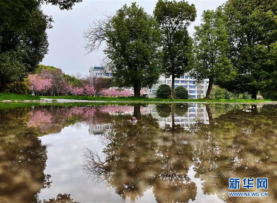 近日,隨著氣溫上升,武漢大學(xué)圖書館附近一片櫻花開(kāi)放。 新華社記者 費(fèi)茂華 攝