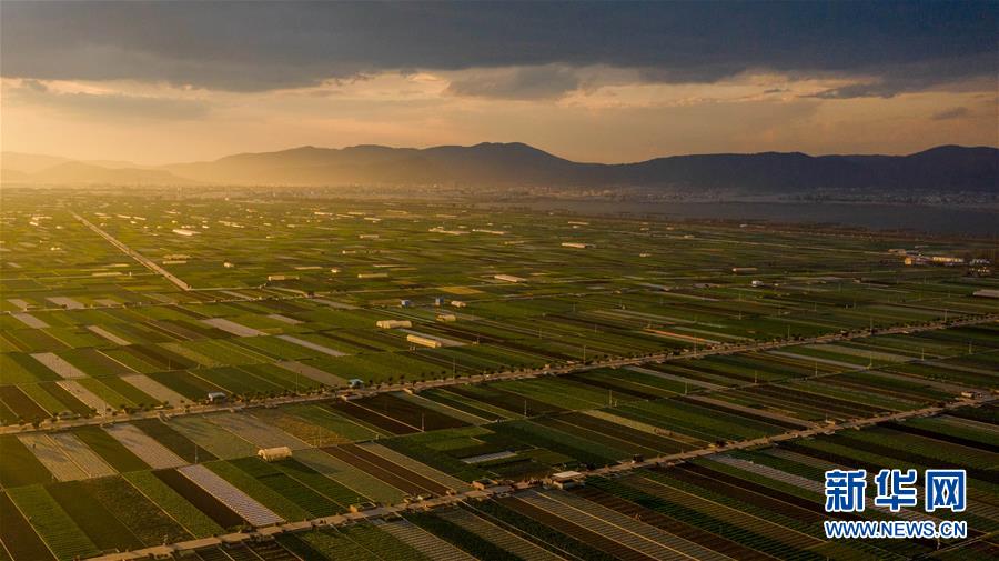 時(shí)下正值農(nóng)忙時(shí)節(jié),云南省玉溪市通??h的農(nóng)作物長(zhǎng)勢(shì)喜人,山巒、湖水與農(nóng)田組成了一幅美麗的田園詩(shī)畫(huà)卷。
