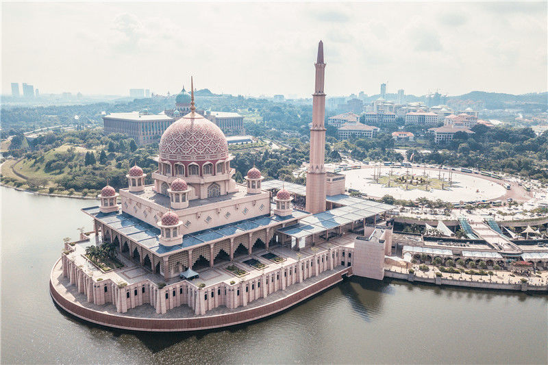 2018年05月30日,位于馬來(lái)西亞首都布城粉紅清真寺(Masjid Putra),圖為航拍俯視圖。丁俊豪/視覺(jué)中國(guó)