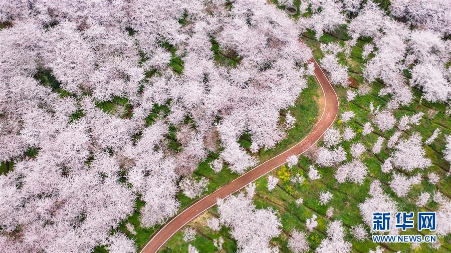 3月12日拍攝的貴安新區(qū)櫻花觀光園風(fēng)景(無(wú)人機(jī)照片)。 近日,貴州省貴安新區(qū)櫻花觀光園內(nèi)櫻花競(jìng)相盛開(kāi),花團(tuán)錦簇間春意盎然。據(jù)介紹,疫情防控期間,為避免人群聚集,櫻花園暫不接待游客。 新華社記者 陶亮 攝