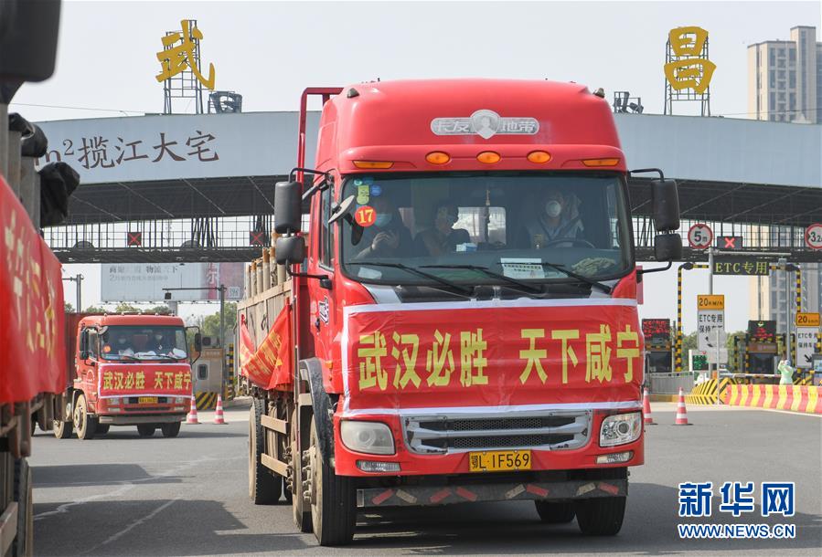 3月13日,滿載活魚(yú)的水產(chǎn)運(yùn)輸車(chē)進(jìn)入武漢。當(dāng)日,首批100噸調(diào)配自湖北省咸寧市的活魚(yú)運(yùn)抵武漢市硚口區(qū)11個(gè)街道下轄社區(qū)。咸寧是魚(yú)米之鄉(xiāng),水產(chǎn)資源豐富。此次戰(zhàn)疫咸寧得到了全國(guó)人民的支持,疫情得到良好控制。咸寧送魚(yú),希望傳遞愛(ài)心,支持武漢早日戰(zhàn)勝疫情。新華社記者程敏攝