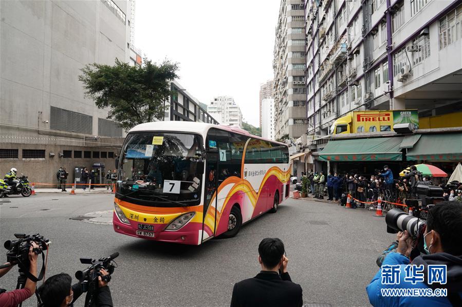 2月20日,首批被接回的香港居民乘坐專車,抵達(dá)特區(qū)政府設(shè)立在新界的火炭駿洋邨檢疫營。