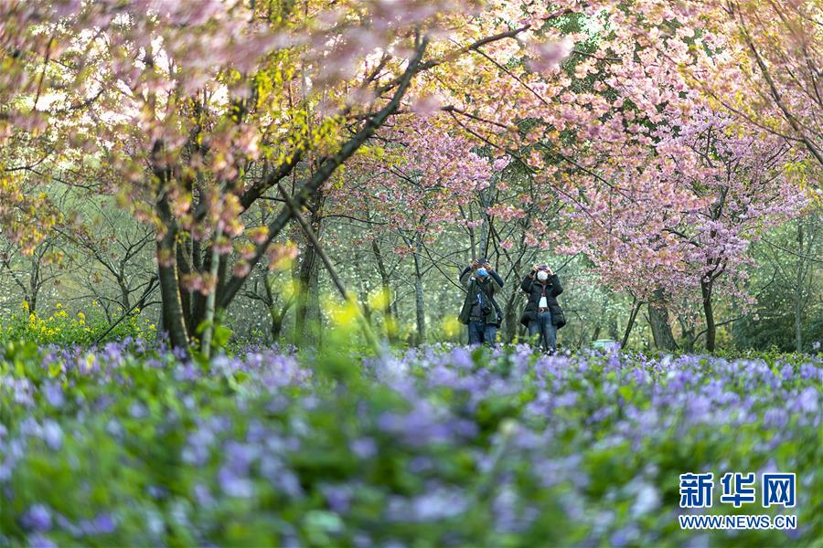 3月14日,游客在武漢東湖磨山櫻園游玩。近日氣溫漸升,武漢東湖磨山櫻園里的櫻花漸次盛開,帶來春天的氣息。新華社記者熊琦攝