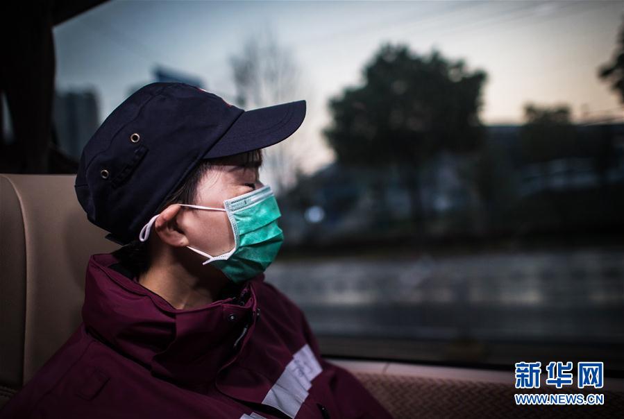3月17日,陜西國家緊急醫(yī)學救援隊隊員在回程的車上拍攝武漢的日出。新華社記者肖藝九攝