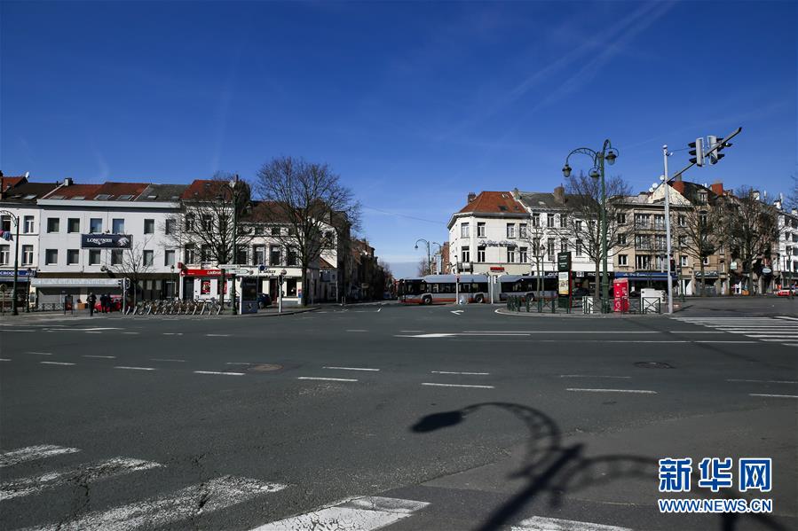 這是3月18日在比利時布魯塞爾拍攝的空曠的道路。 新華社記者 張鋮 攝