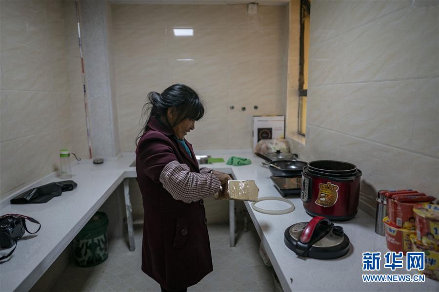 王大香在新家準(zhǔn)備做飯(3月15日攝)。 新華社記者 江文耀 攝