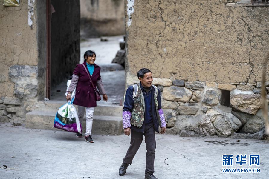 云南省永善縣大興鎮(zhèn)駱丘村村民晏付高與妻子王大香離開老屋(3月14日攝)。 新華社記者 江文耀 攝