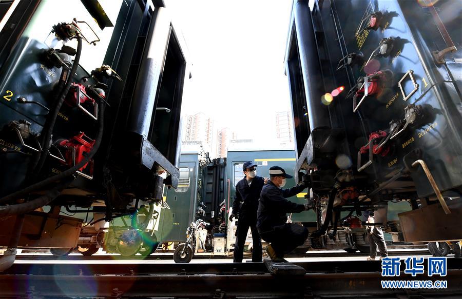 3月19日,鄭州車輛段客車檢車員在對(duì)車鉤進(jìn)行狀態(tài)記錄和測(cè)量。新華社記者 李安 攝