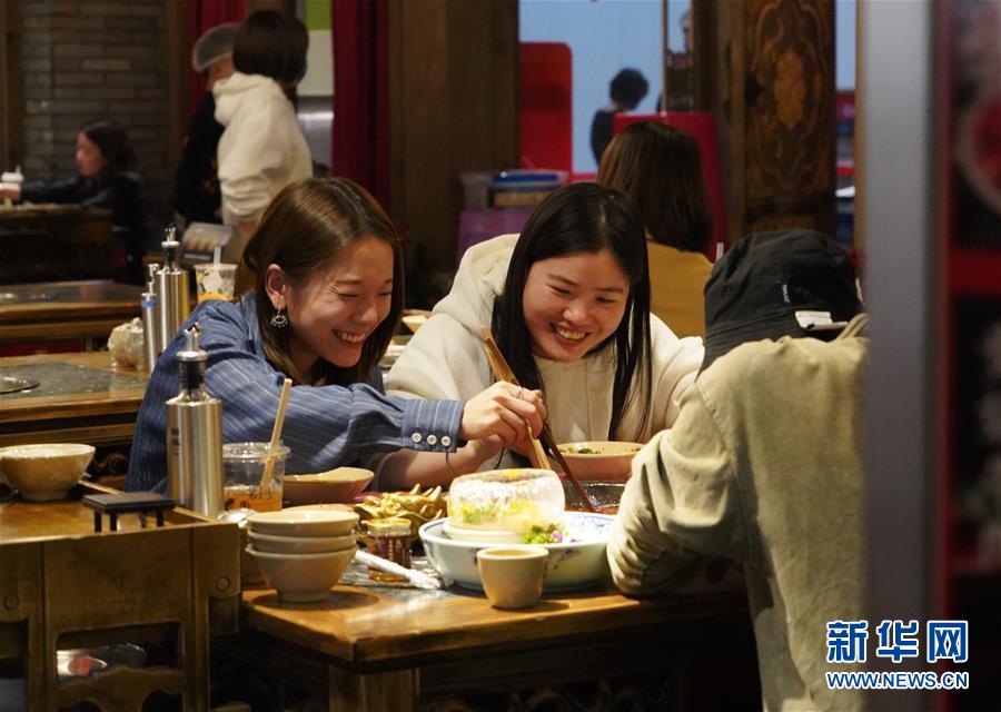 3月21日,在四川省成都市的一家火鍋店內(nèi),顧客在就餐。近日,在做好新冠肺炎疫情防控措施的基礎上,四川省成都市的火鍋店逐漸恢復營業(yè)。新華社記者李夢馨攝