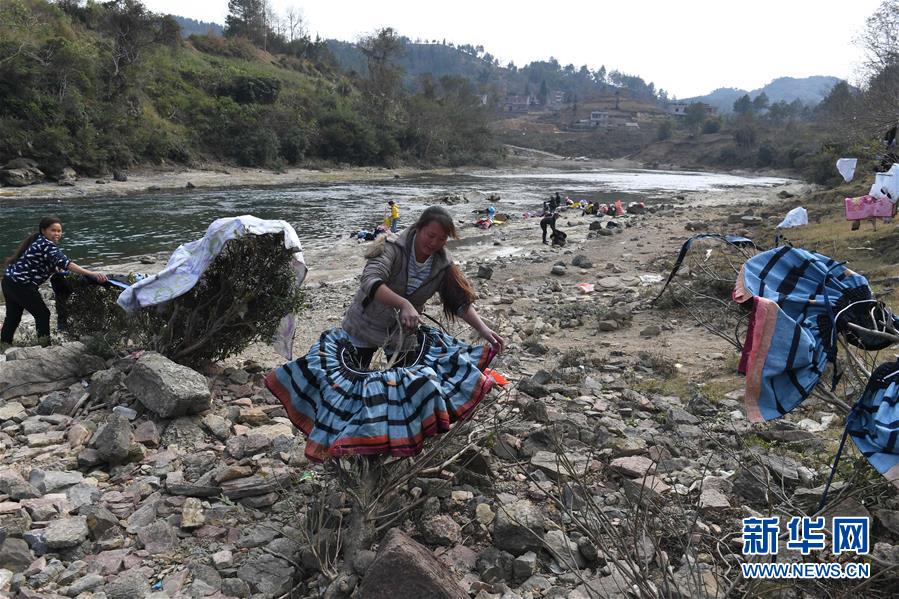 廣西南丹縣里湖瑤族鄉(xiāng),村民在河邊洗衣并就地晾曬(2018年1月12日攝)。廣西有近一半貧困人口生活在石漠化地區(qū),涉及數(shù)十個(gè)縣區(qū)。這里也是廣西飲水保障程度最低的地區(qū),解決貧困人口飲水問題是廣西脫貧攻堅(jiān)戰(zhàn)“硬仗中的硬仗”。“十三五”以來,廣西加快實(shí)施農(nóng)村飲水安全鞏固提升工程。因地制宜,采取新建、擴(kuò)建及管網(wǎng)延伸等多種措施,補(bǔ)齊貧困地區(qū)水利薄弱短板,進(jìn)一步提升石漠化地區(qū)群眾飲水安全保障水平,助推脫貧攻堅(jiān)。新華社記者周華攝
