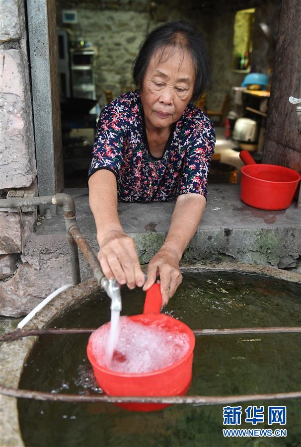 在廣西都安瑤族自治縣龍灣鄉(xiāng)琴棋村琴嶺屯,村民在接從水柜里引來的自來水(2019年7月23日攝)。廣西有近一半貧困人口生活在石漠化地區(qū),涉及數(shù)十個(gè)縣區(qū)。這里也是廣西飲水保障程度最低的地區(qū),解決貧困人口飲水問題是廣西脫貧攻堅(jiān)戰(zhàn)“硬仗中的硬仗”?!笆濉币詠?,廣西加快實(shí)施農(nóng)村飲水安全鞏固提升工程。因地制宜,采取新建、擴(kuò)建及管網(wǎng)延伸等多種措施,補(bǔ)齊貧困地區(qū)水利薄弱短板,進(jìn)一步提升石漠化地區(qū)群眾飲水安全保障水平,助推脫貧攻堅(jiān)。新華社記者陸波岸攝