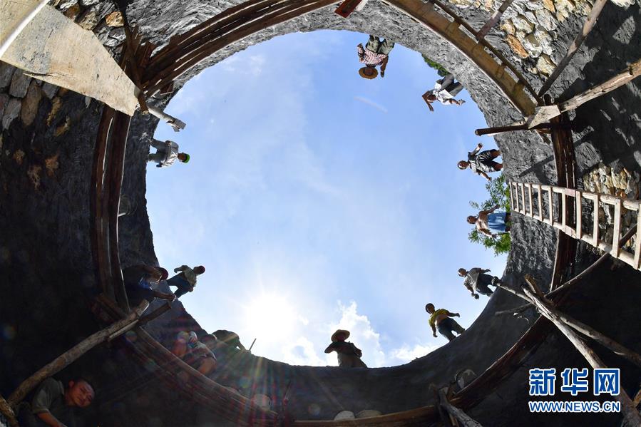 在廣西都安瑤族自治縣龍灣鄉(xiāng)龍煥村大朋屯,當(dāng)?shù)厝罕娫谛藿ㄋ瘢?019年7月23日攝)。廣西有近一半貧困人口生活在石漠化地區(qū),涉及數(shù)十個(gè)縣區(qū)。這里也是廣西飲水保障程度最低的地區(qū),解決貧困人口飲水問題是廣西脫貧攻堅(jiān)戰(zhàn)“硬仗中的硬仗”?!笆濉币詠?,廣西加快實(shí)施農(nóng)村飲水安全鞏固提升工程。因地制宜,采取新建、擴(kuò)建及管網(wǎng)延伸等多種措施,補(bǔ)齊貧困地區(qū)水利薄弱短板,進(jìn)一步提升石漠化地區(qū)群眾飲水安全保障水平,助推脫貧攻堅(jiān)。新華社記者陸波岸攝