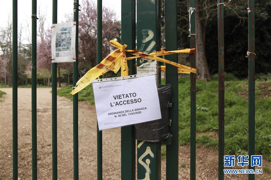3月14日,在意大利首都羅馬,一所公園因新冠病毒疫情關閉。新華社記者劉詠秋攝