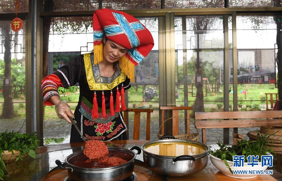 探秘“壯族三月三”五色糯米飯制作