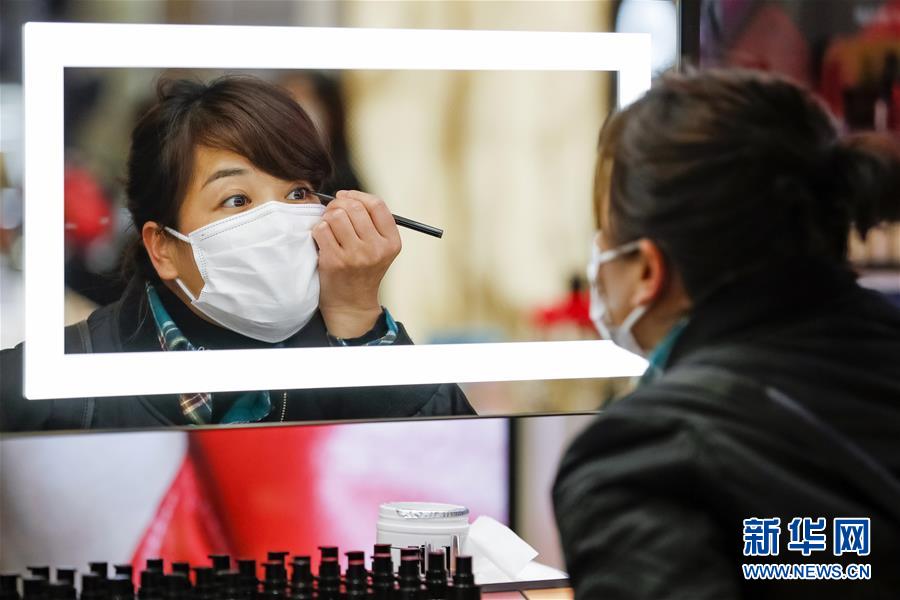3月30日,在武漢市武商廣場,消費(fèi)者在試用眉筆。當(dāng)日,武漢市多家商場開門迎客。新華社記者沈伯韓攝