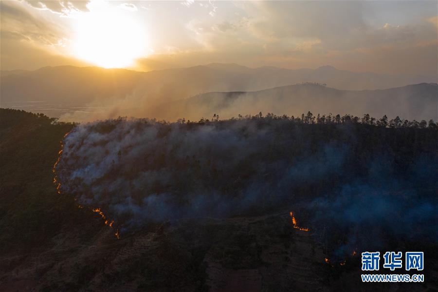 這是3月31日在西昌市經(jīng)久鄉(xiāng)拍攝的森林火災(zāi)現(xiàn)場(無人機(jī)照片)。新華社記者江宏景攝