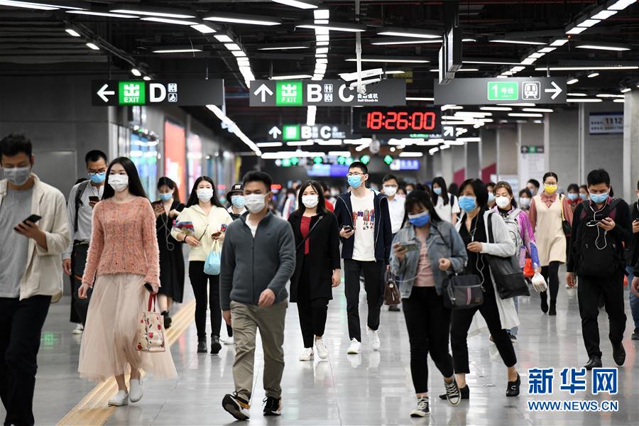 3月18日晚高峰時(shí)段,在深圳地鐵車公廟站,乘客在站廳內(nèi)通行。新華社記者梁旭攝