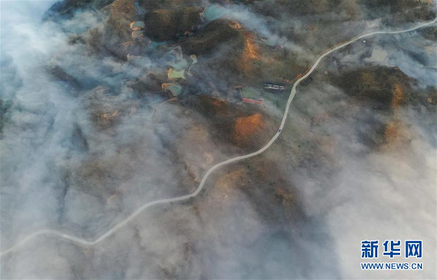 這是融水苗族自治縣桿洞鄉(xiāng)堯告村的村屯公路(1月5日無人機拍攝)。新華社記者黃孝邦攝