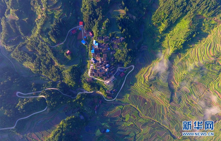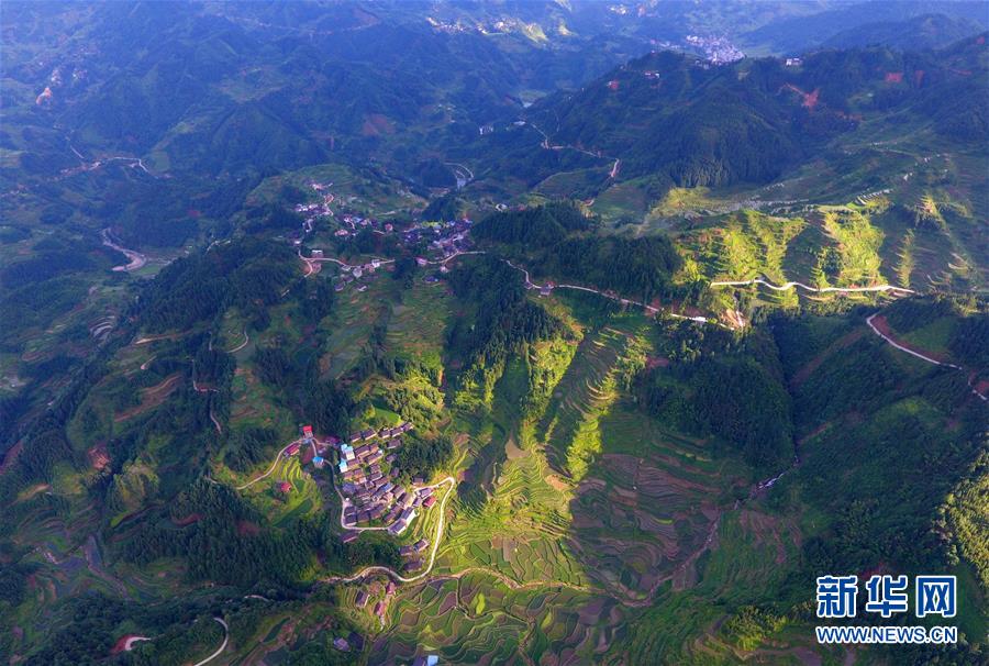 在融水苗族自治縣桿洞鄉(xiāng)黨鳩村下黨鳩屯,道路已經(jīng)修到家家戶戶門前(6月21日無人機拍攝)。新華社記者黃孝邦攝