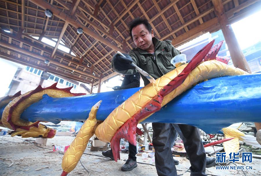 烏英苗寨村民給新蘆笙柱涂油漆(12月20日攝)。新華社記者黃孝邦攝