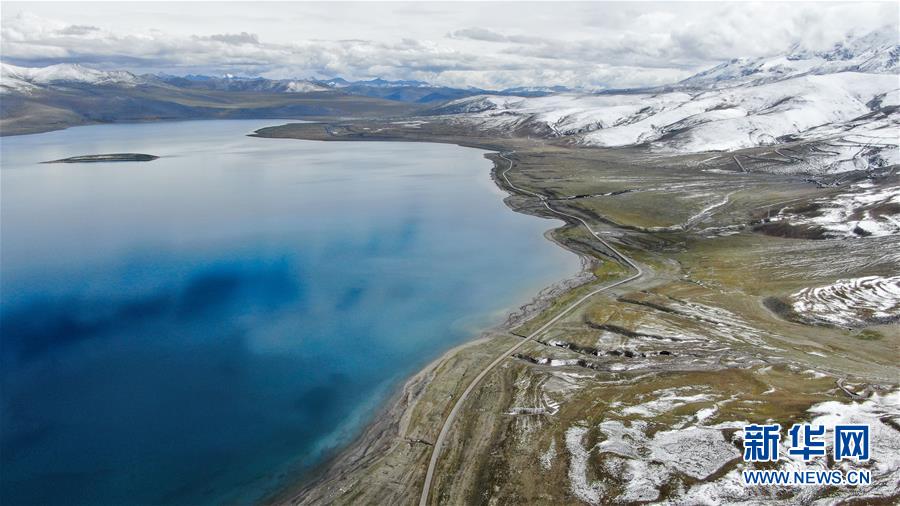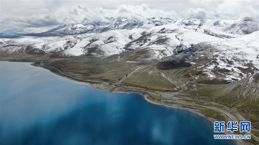 普姆雍錯(cuò)湖緊挨著公路,是自駕游的理想目的地(9月19日無(wú)人機(jī)拍攝)。新華社記者晉美多吉攝