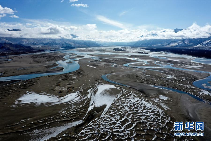 這是3月24日拍攝的雅魯藏布江雪景(無(wú)人機(jī)照片)。新華社記者普布扎西攝