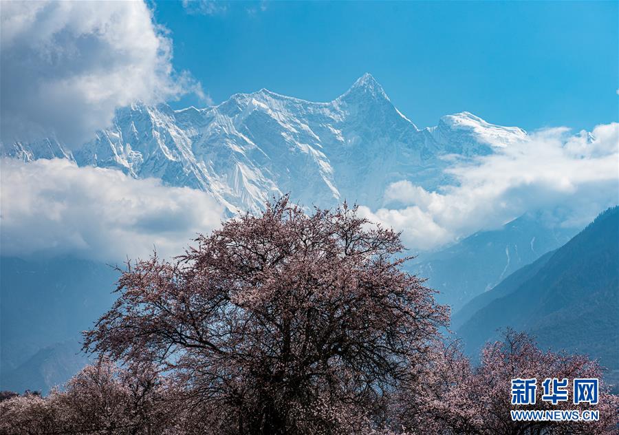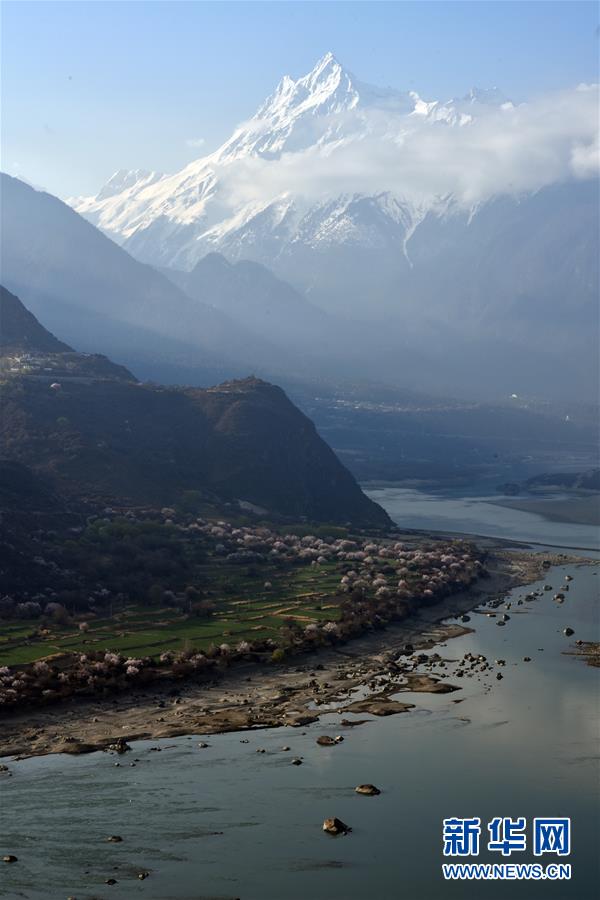 南迦巴瓦峰下盛開(kāi)的桃花(4月1日攝)。新華社記者黃豁攝