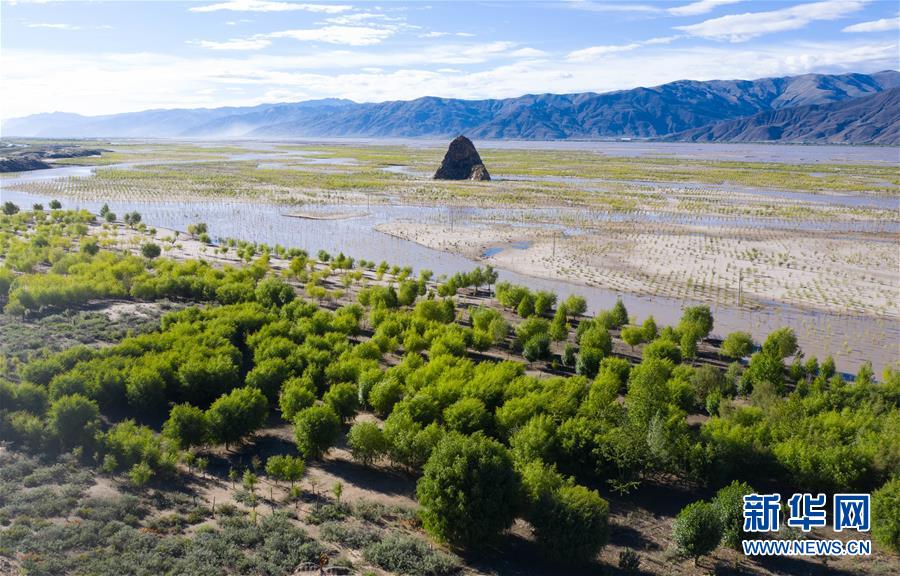 西藏雅魯藏布江兩岸栽植的樹(shù)木(7月16日無(wú)人機(jī)拍攝)。新華社記者普布扎西攝