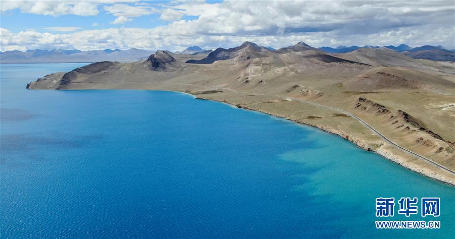 普姆雍錯(cuò)湖緊挨著公路,是自駕游的理想目的地(9月19日無(wú)人機(jī)拍攝)。新華社記者晉美多吉攝