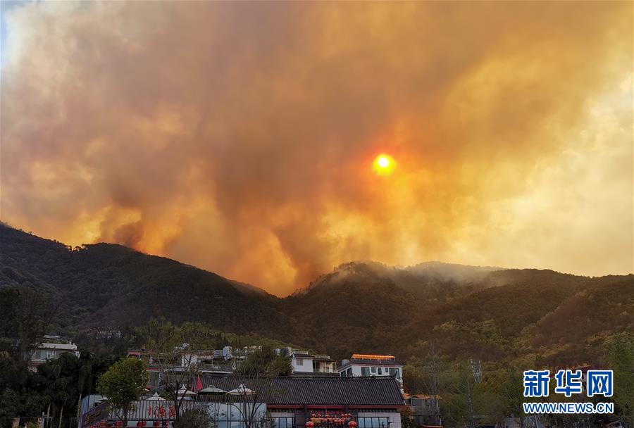 這是3月31日在四川省西昌市邛海畔拍攝的瀘山火場畫面。新華社記者惠小勇攝