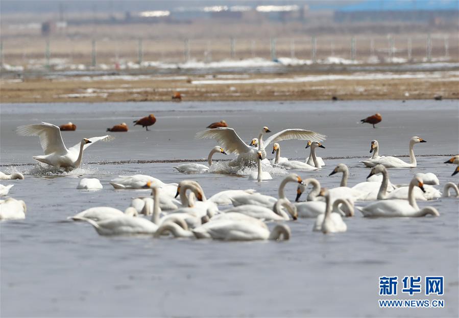 這是4月1日在張北縣黃蓋淖國(guó)家濕地公園拍攝的候鳥(niǎo)。  新華社記者楊世堯攝