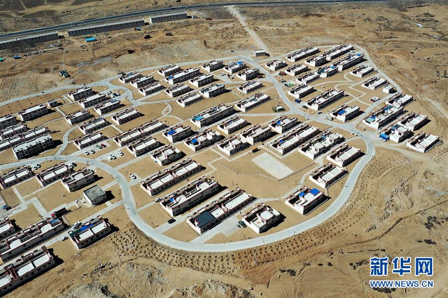 拉薩市堆龍德慶區(qū)古榮鄉(xiāng)榮瑪高海拔生態(tài)搬遷點(diǎn)一景(4月1日攝,無人機(jī)照片)。新華社記者 詹彥 攝