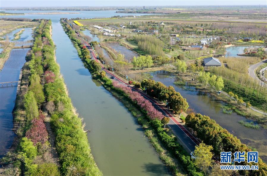 江蘇白馬湖畔春花綻放 景色怡人