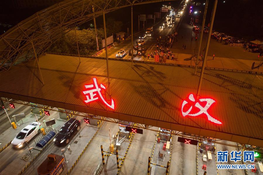 4月8日凌晨,車輛通過武漢北高速收費(fèi)站(無人機(jī)照片)。新華社記者 肖藝九 攝