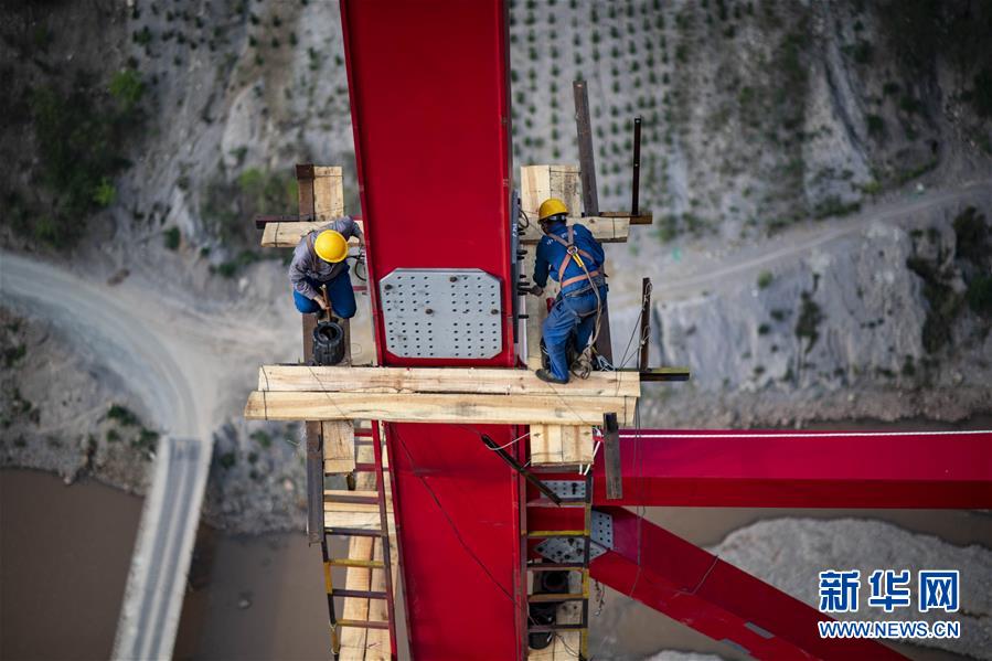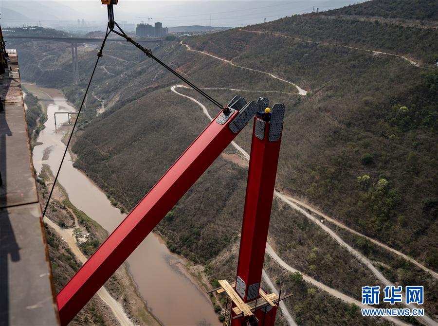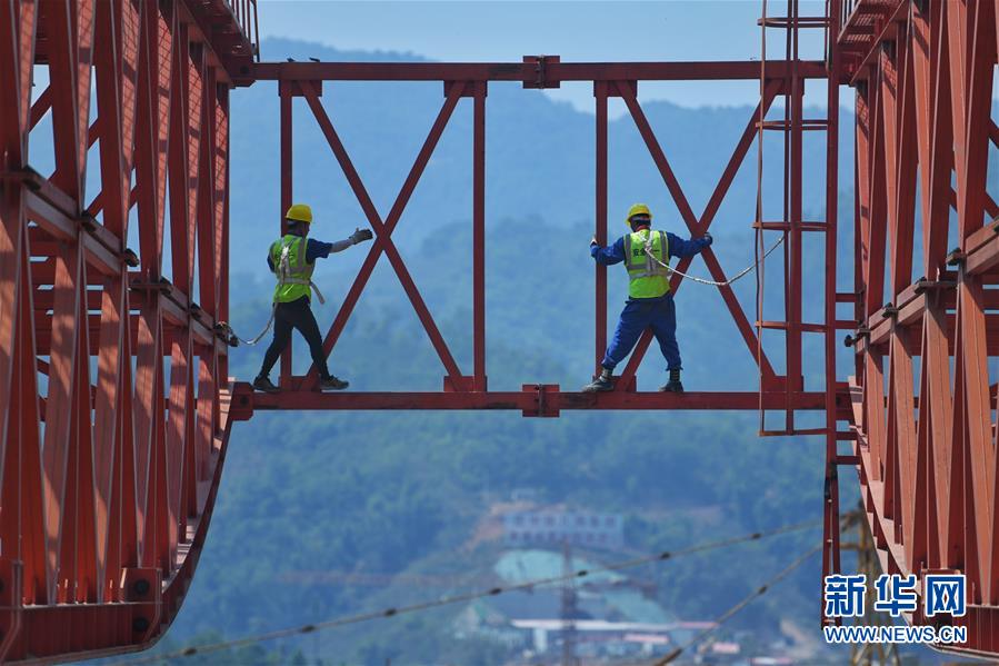 4月8日清晨,工人在中老鐵路元江特大橋上進(jìn)行鋼桁梁架設(shè)作業(yè)(無(wú)人機(jī)照片)。4月7日,中老鐵路全線重點(diǎn)控制性工程——元江特大橋迎來(lái)關(guān)鍵節(jié)點(diǎn),主橋鋼桁梁正式“邁”過(guò)154米高的主橋墩,這是世界同類鐵路橋梁第一高墩。元江特大橋位于云南省元江縣,采用上承式連續(xù)鋼桁梁跨越峽谷,全長(zhǎng)832.2米,建成后,其249米的主跨也將刷新國(guó)內(nèi)同類橋梁跨度紀(jì)錄。新華社記者江文耀攝