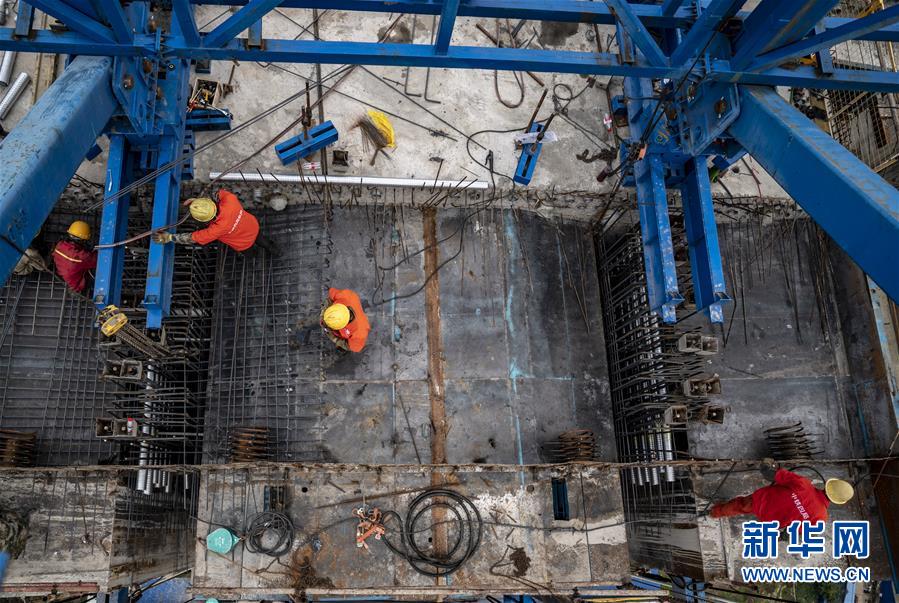 3月5日,工人在中老鐵路南溪河特大橋上施工。新華社記者江文耀攝