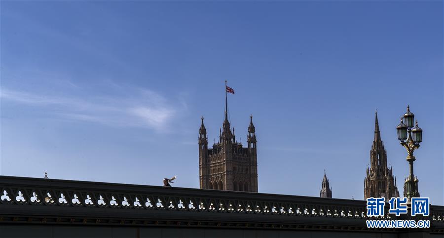 這是4月14日,一名女子在英國倫敦議會大廈前的威斯敏斯特橋上跑步。新華社記者韓巖攝