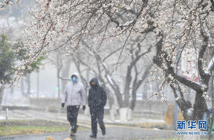 4月21日,長春市民冒雪出行。當(dāng)日,吉林省多地迎來降雪天氣。新華社記者許暢攝