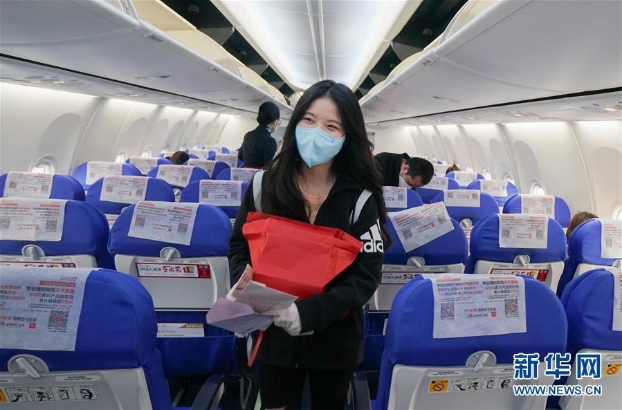 4月8日,在武漢天河國際機場,東方航空MU2527航班旅客登機。新華社記者程敏攝