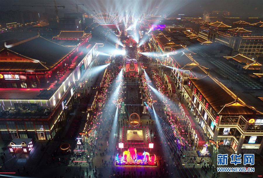 西安大唐不夜城夜景(2019年2月17日無(wú)人機(jī)照片)。 新華社記者 邵瑞 攝