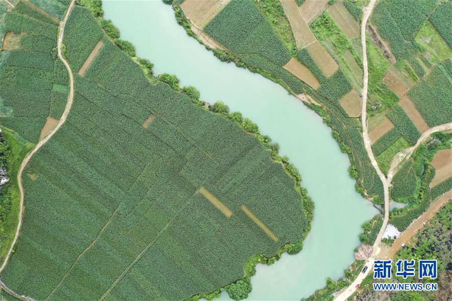 廣西隆安縣南圩鎮(zhèn)田園景色(4月23日攝,無人機照片)。新華社記者曹祎銘攝