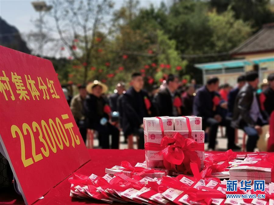 4月24日拍攝的甘肅省隴南市徽縣鐵山村公開分紅大會(huì)現(xiàn)場。新華社記者張新新攝