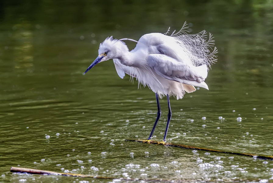 4月15日,攝于南山區(qū)華僑城天鵝堡附近。這是深圳拍鷺鳥的其中一個好去處。一只白鷺站在水面上。徐捷攝