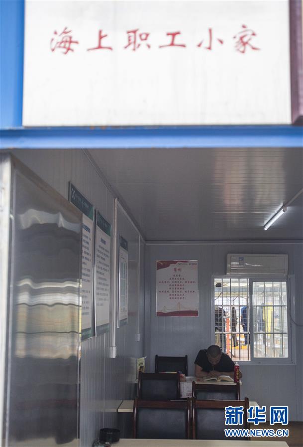 盡管工人生活區(qū)建在海上,但是生活設(shè)施一應(yīng)俱全。中交二航局每日專門拉運(yùn)淡水與新鮮食材到生活區(qū),并設(shè)置了圖書室與電影區(qū)等配套設(shè)施,為生活區(qū)的工人們做好后勤保障,助力施工建設(shè)。
